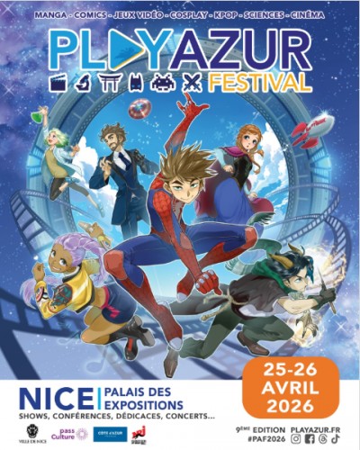| Description | Play Azur Festival... Est de retour pour une 9ème édition plus mémorable que jamais ! Au programme : de nombreuses zones thématiques dédiées aux univers qui vous font vibrer ! Manga, Comics, Jeux Vidéo, Cinéma, Séries, Cosplay, Sciences, Jeu de société, eSport, K-Pop, Science-Fiction, Fantastique, Asie, Corée… Pour les amoureux de sorcellerie vous retrouverez cette année encore la zone iconique des sorciers, dédiée à la magie et l’imaginaire... Sans oublier nos 4 scènes avec des concerts et conférences en tout genre tout au long du weekend. Et surtout de quoi se restaurer avec plusieurs stands aux saveurs inégalées… Préparez-vous à vivre une édition encore plus pop que celle de l’année dernière ! Horaires : -- Prévente Le samedi 25 avril : de 9h30 à 19h00 Le dimanche 26 avril : de 9h30 à 18h00 Billetterie sur place Le samedi 25 avril : de 10h00 à 18h00 Le dimanche 26 avril : de 10h00 à 18h00. Tarifs : 1 jour : de 11 € à 44 € 2 jour : de 17 € à 64 €. Restauration : Sur place. Gratuit : pour les moins de 7 ans |