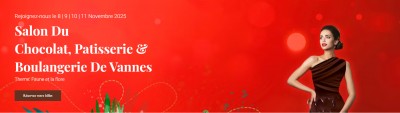 Description | Salon du Chocolat, Pâtisserie & Boulangerie... La destination incontournable pour les professionnels et les passionnés de chocolat, pâtisserie et boulangerie. Plongez dans un univers où la tradition rencontre l'innovation, avec des artisans venus de toute la France et du monde entier présentant leurs créations artisanales exquises. --- 100 Exposants --- Salon de la Gourmandise du Grand Ouest Des artisans venus de toute la France pour vous faire découvrir leurs créations artisanales: chocolats, pâtisseries, boulangeries, confiseries, glaces, cafés, thés, fruits secs, vins, champagnes. Un véritable voyage des saveurs, alliant tradition et innovation. --- Défilé du chocolat --- 3 Défilés par Jour Découvrez des robes chocolatées présentées lors de défilés, créées par des chocolatiers et couturières de classe mondiale. Laissez-vous emporter par un spectacle où chaque pièce vous plonge dans un univers de couleurs et de délices chocolatés. --- L'Équateur, Pays Invité d’Honneur 2025 --- Nous avons l’honneur d’accueillir l’Équateur comme Pays Invité d’Honneur lors du Salon du Chocolat, Pâtisserie & Boulangerie de Vannes, qui se tiendra du 08 au 11 Novembre 2025. Berceau de la fève de cacao et premier producteur mondial de cacao fino de aroma, l’Équateur est un acteur incontournable du chocolat d’exception. Avec ses traditions riches et son savoir-faire artisanal unique, l’Équateur incarne parfaitement l’authenticité et la passion qui animent notre événement. Cette édition du Salon, placée sous le thème "La faune et la flore", offrira une immersion totale dans la culture équatorienne du chocolat et bien au-delà. Horaires : Les samedi 8, dimanche 9 et lundi 10 novembre : de 10h00à 19h00 Le mardi 11 novembre : de 10h00 à 18h00. Tarifs : -- Prévente 1 jour : 6 € Pass 2 jours : 10 € -- Sur place Plein : 7 €. |